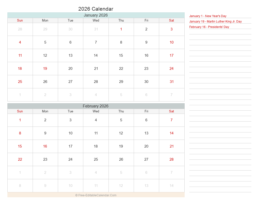 Free printable 2026 bi-monthly calendars. View all 6 periods with holidays. Perfect for personal planning and project management.